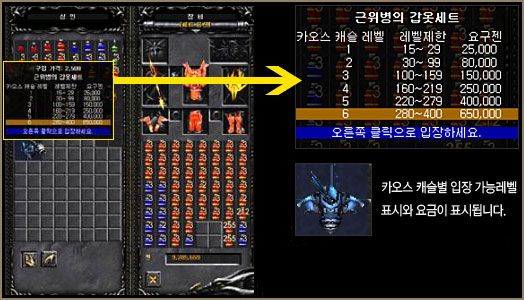 Để bước vào Chaos Castle, bạn nhấp chuột phải vào Giáp Hộ Mệnh (khi đúng thời gian yêu cầu).
